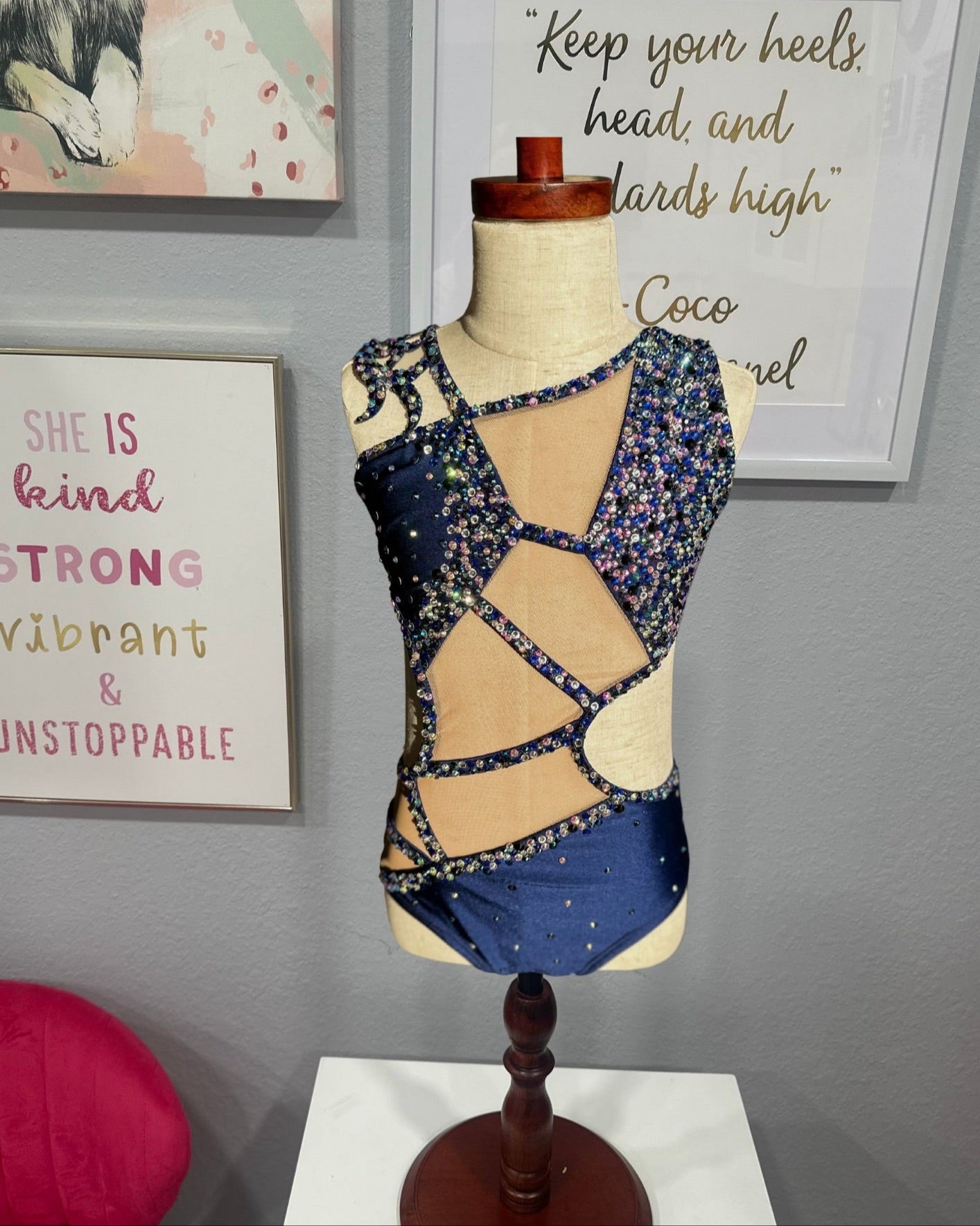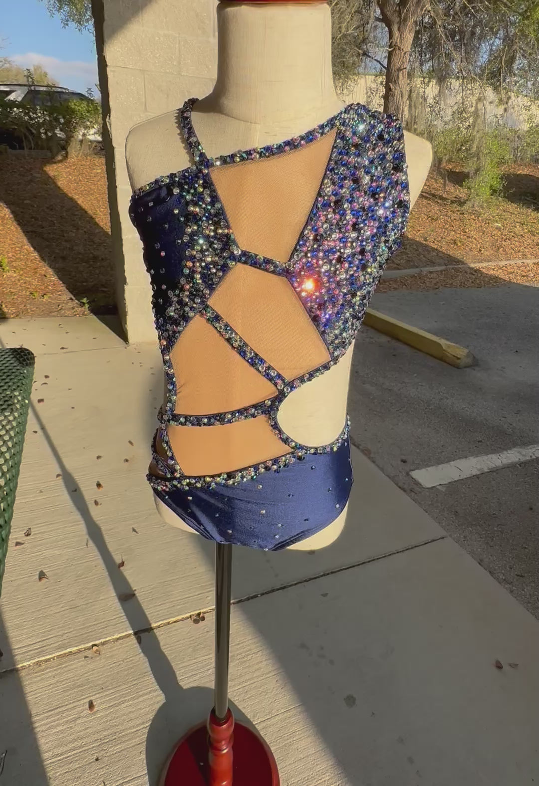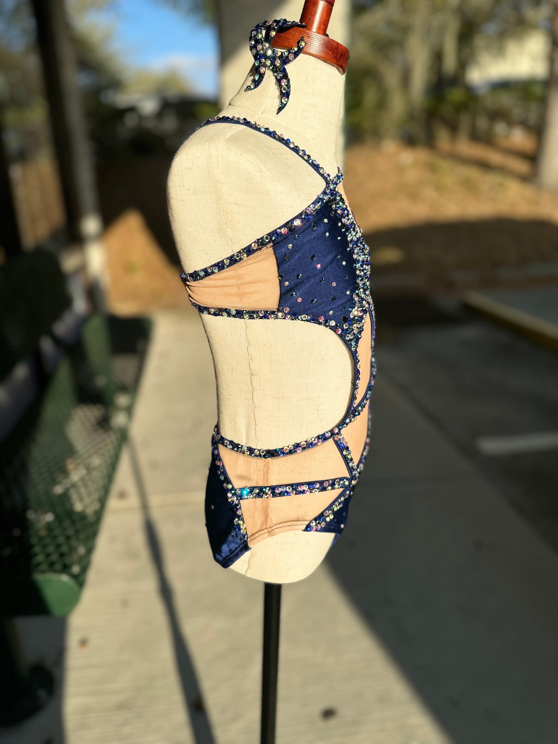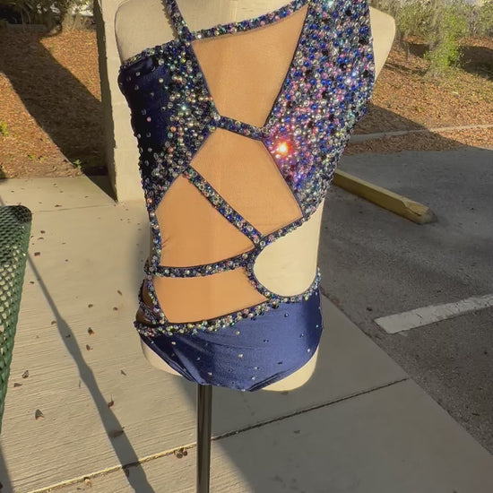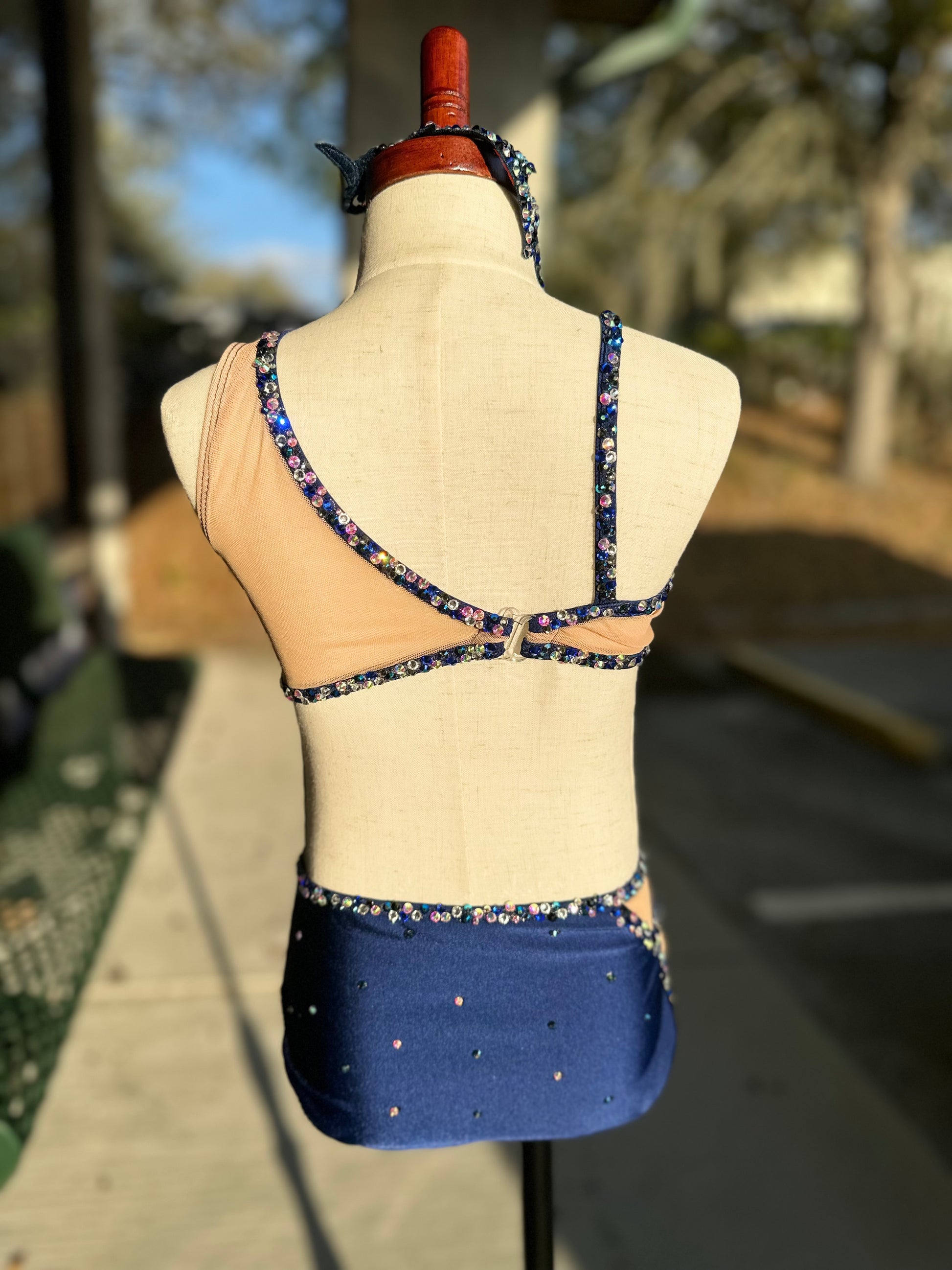 Semi-custom contemporary costume featuring an Opra CI(7) base and covered in shades of blue, black, & crystal stones. Absolutely STUNNING on stage and truly steals the show.