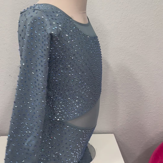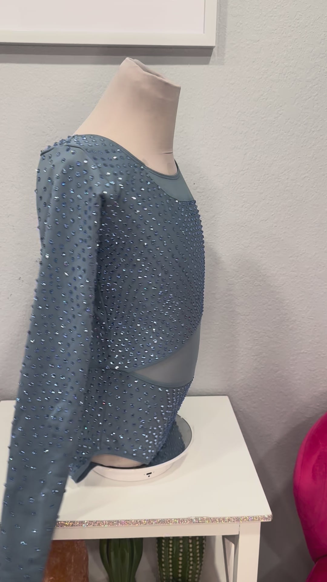 A stunning Eleve base completely covered in 7–10 gross of dazzling Preciosa Maxima stones for unmatched sparkle on stage. This showstopper is available for rent as a solo, duo, or trio, making it perfect for any performance where you want maximum impact and shine.