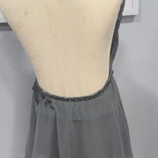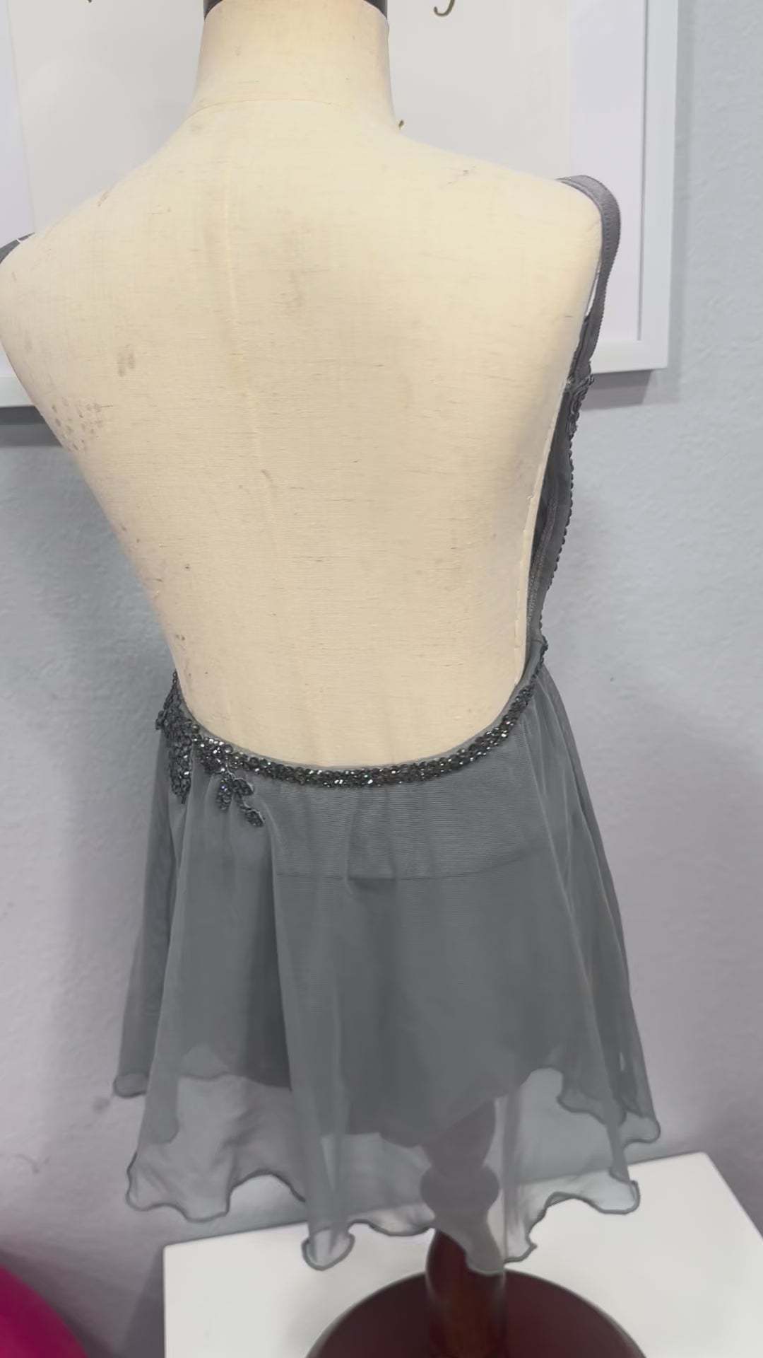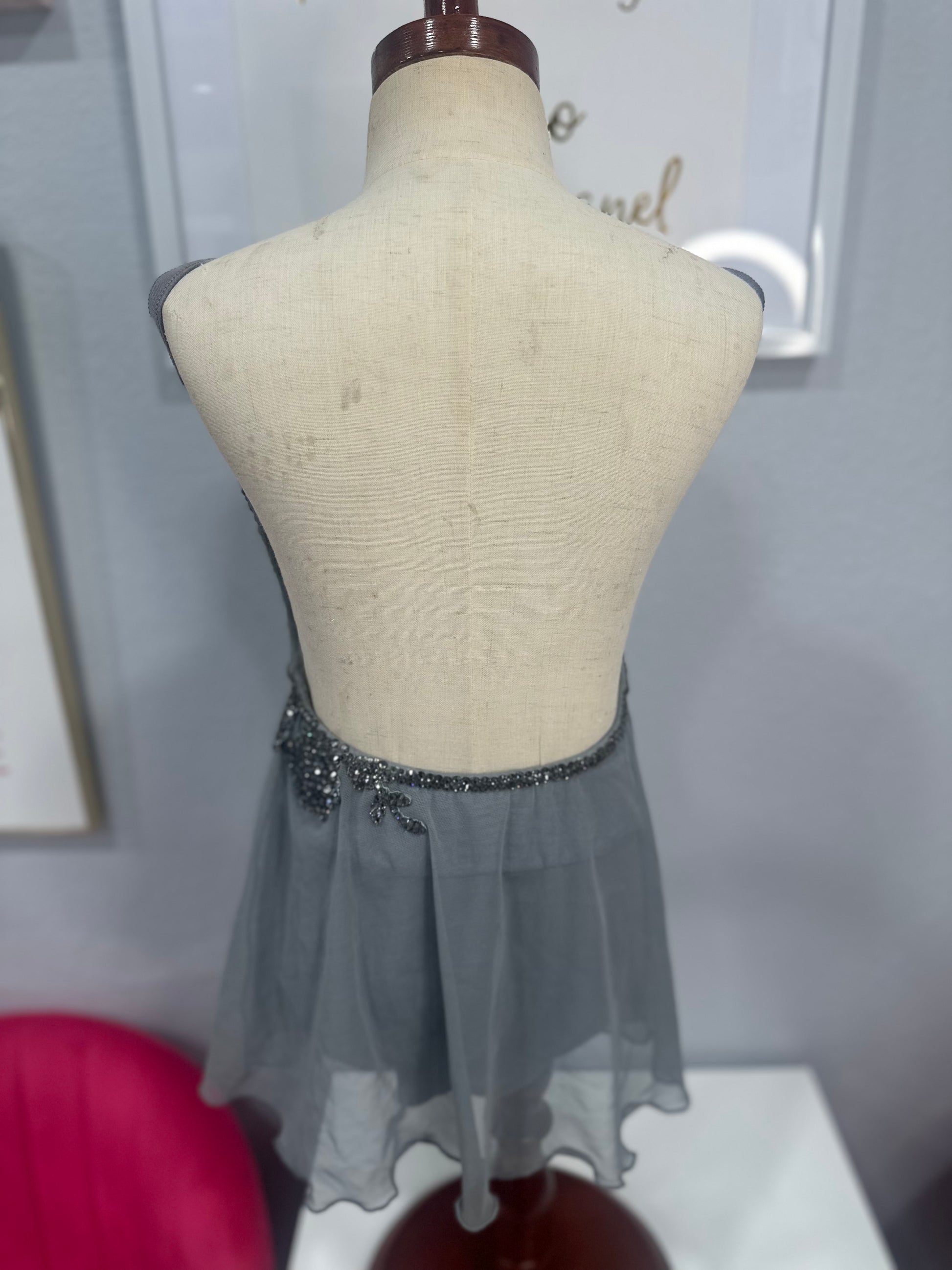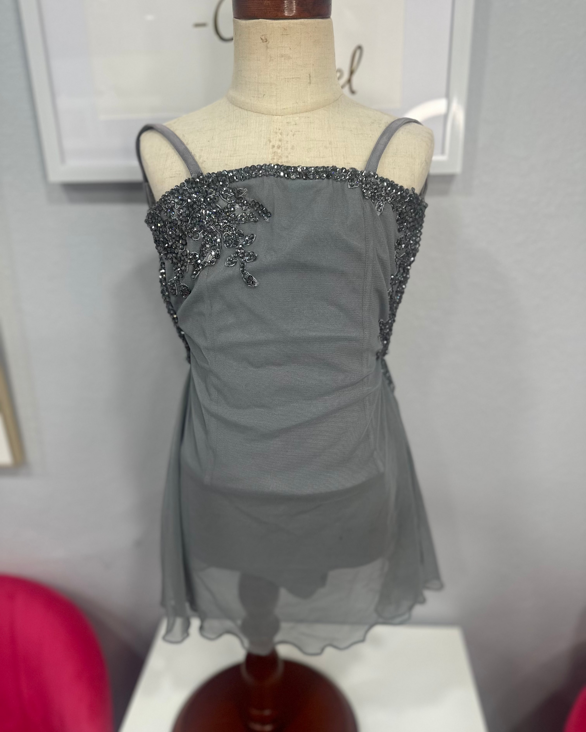The most elegant and classic little dress by the incredible Bahar Carmichael ! This beautiful little gray dress was custom created and hand-stoned with genuine Swarovski crystals for breathtaking sparkle under the lights.
